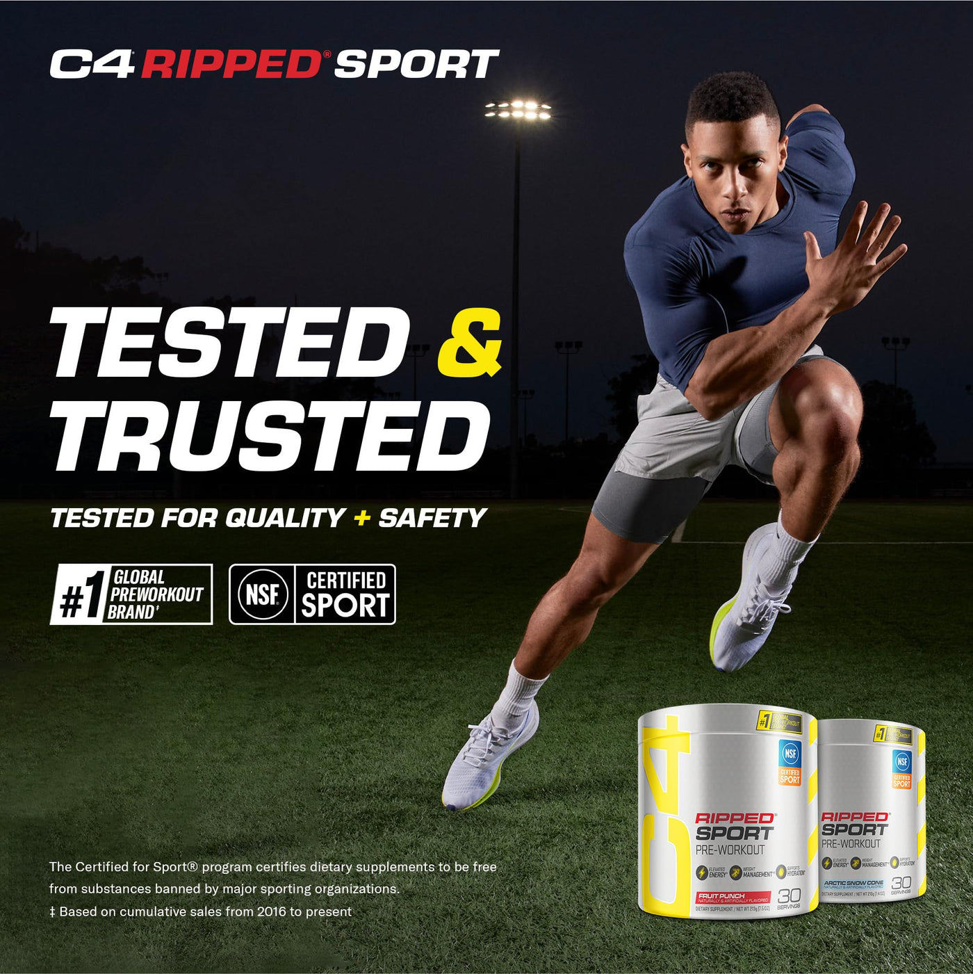 C4 Ripped Sport Pre Workout Powder Fruit Punch - NSF Certified for Sport + Sugar Free