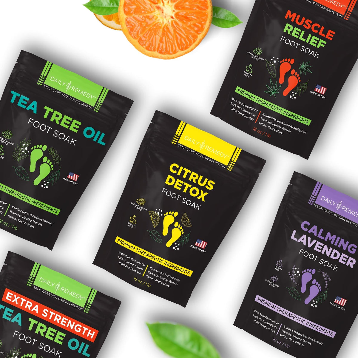 - Revitalize and Detoxify with Nature's Best: Immerse your feet in our citrus epsom salt foot soak, a perfect blend of natural Epsom Salt and Dead Sea Salt infused with a potent mix of MSM and essential oils like Tea Tree, Eucalyptus, Peppermint, Cajuput, Camphor, Rosemary, Coconut Oil, Lemon, Ginger, Lavender, Geranium, Vitamin C, and Vitamin E. Ideal for those seeking a foot detox or body detox foot soak experience.