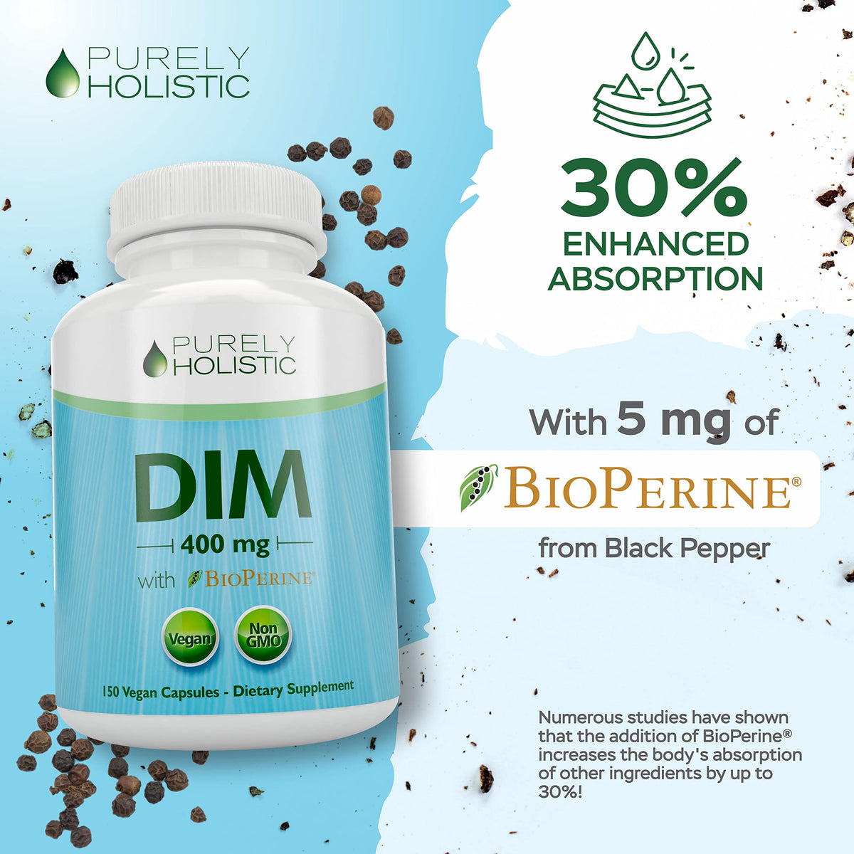 DIM Supplement 400mg Plus Bioperine - 150 Vegan Capsules - 5 Month Supply - Hormone Balance