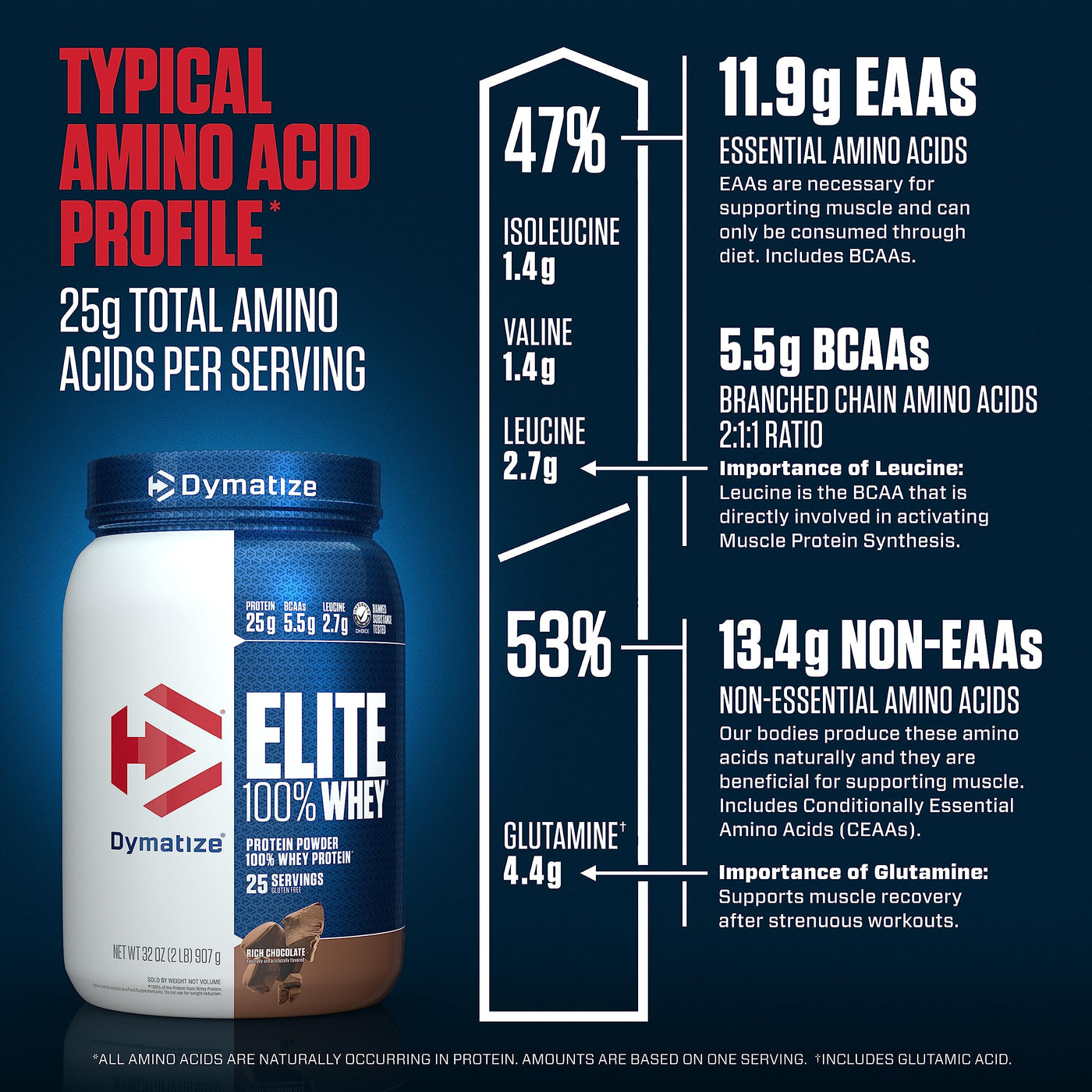 Dymatize Elite 100% Whey Protein Powder, 25g Protein, 5.5g BCAAs & 2.7g L-Leucine