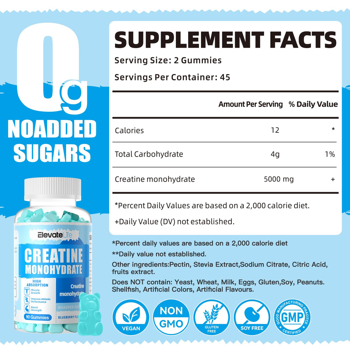 ElevateLife Creatine Monohydrate Gummies 5000mg for Men & Women, Chewables