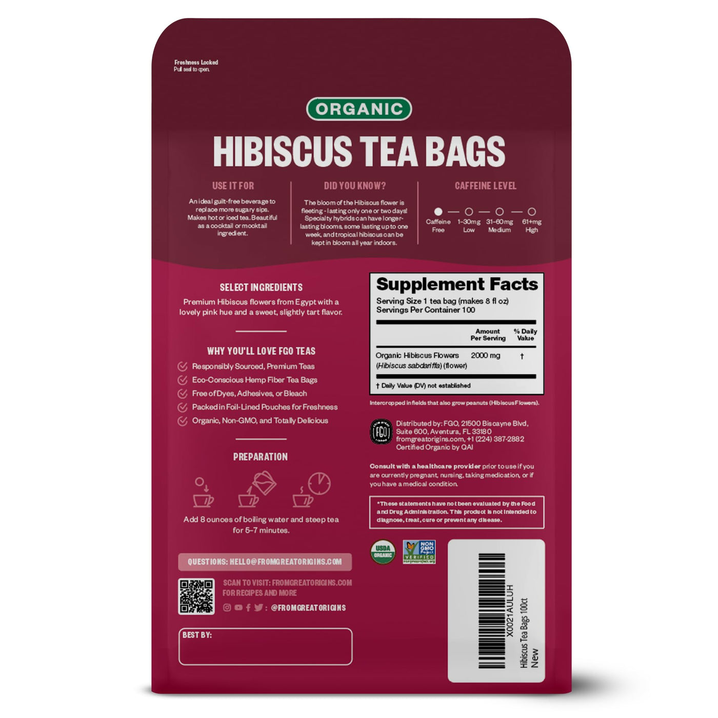 FGO Organic Hibiscus Tea, Eco-Conscious Tea Bags, 100 Count, Packaging May Vary