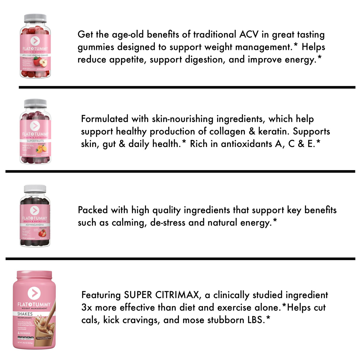Flat Tummy Gummies Bundle with Apple Cider Vinegar Gummies, Superfruits Gummies
