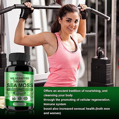 Fleamart 2 Pack Irish Sea Moss Capsules 120ct Raw Organic Sea Moss Wildcrafted Bladder