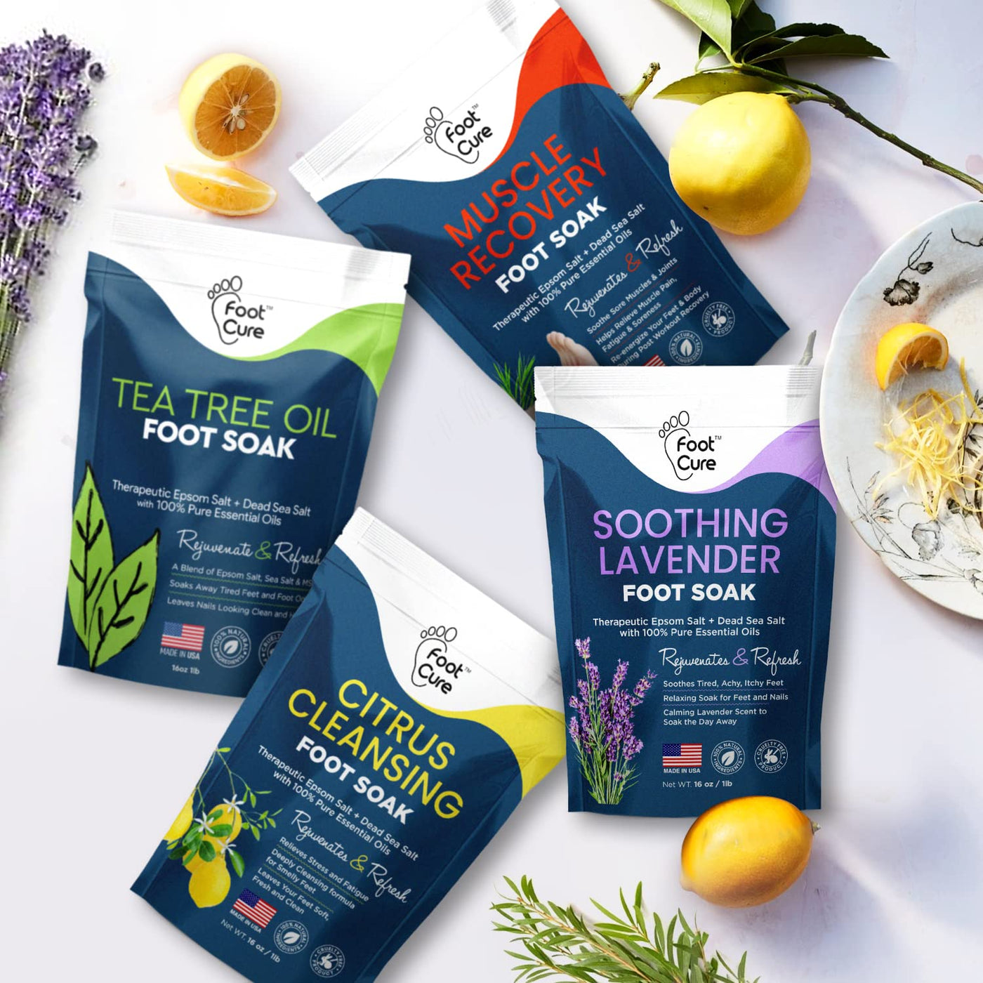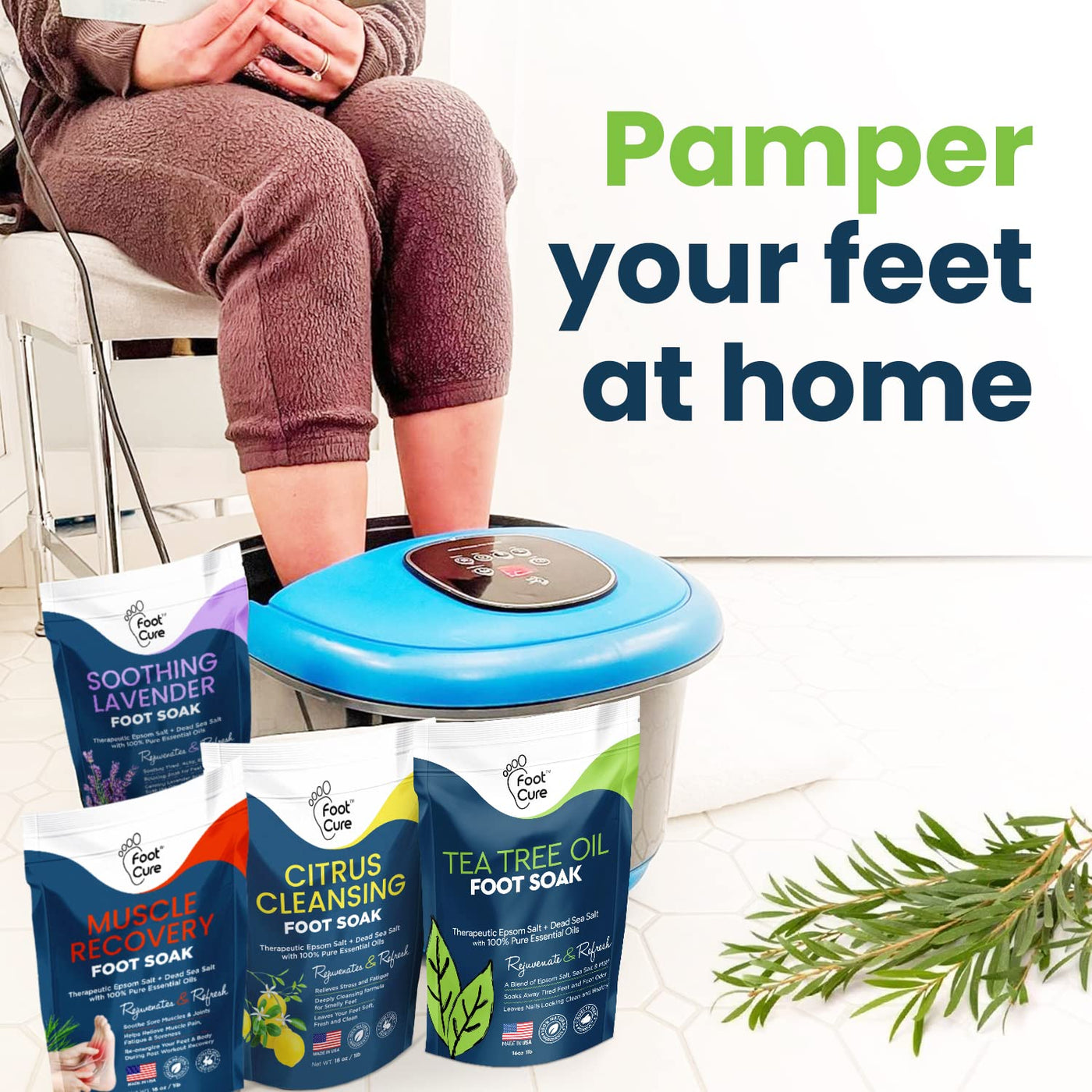 Foot Soak with Epsom Salts- Variety Pack of 4- Tea Tree Oil, Muscle Relief, Calming