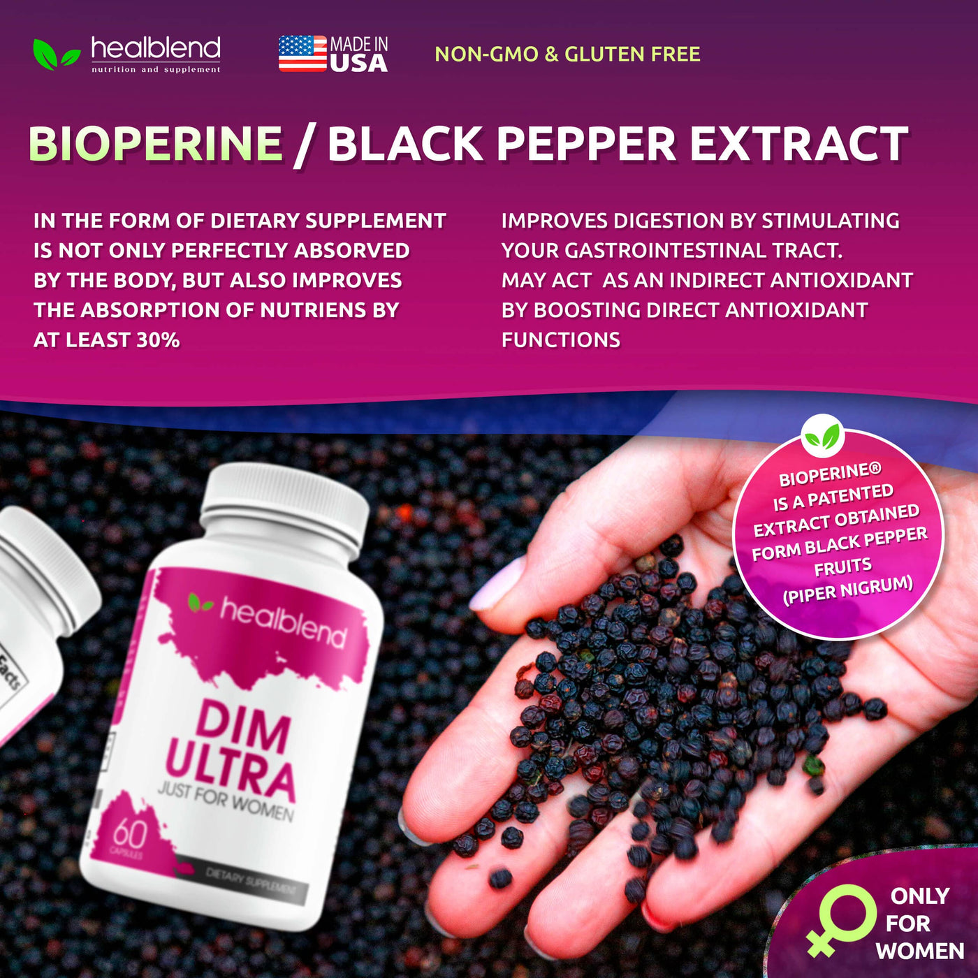 Formulated with BioPerine(a black pepper extract) for increased bioavailability and maximum absorption, which helps in giving all the health benefits of DIM efficiently and quickly.