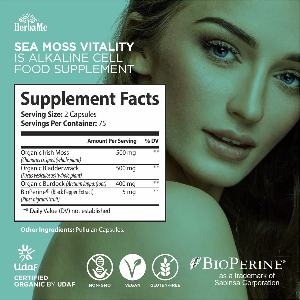 HerbaMe Organic Irish Sea Moss with Bladderwrack, Burdock Root & Black Pepper Extract