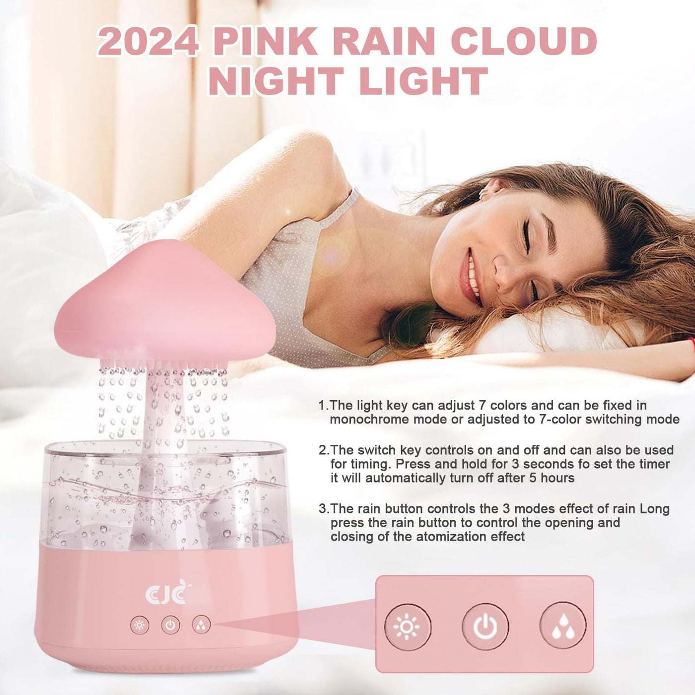 Details: ITEM NAME:Humidifiers for Bedroom, 7 Color-Changing Led Night Lights, Aromatherapy Essential Oil Diffusers, Bedside Mushroom Water Drip Cloud Diffuser Adjustable-Auto-Shut Off