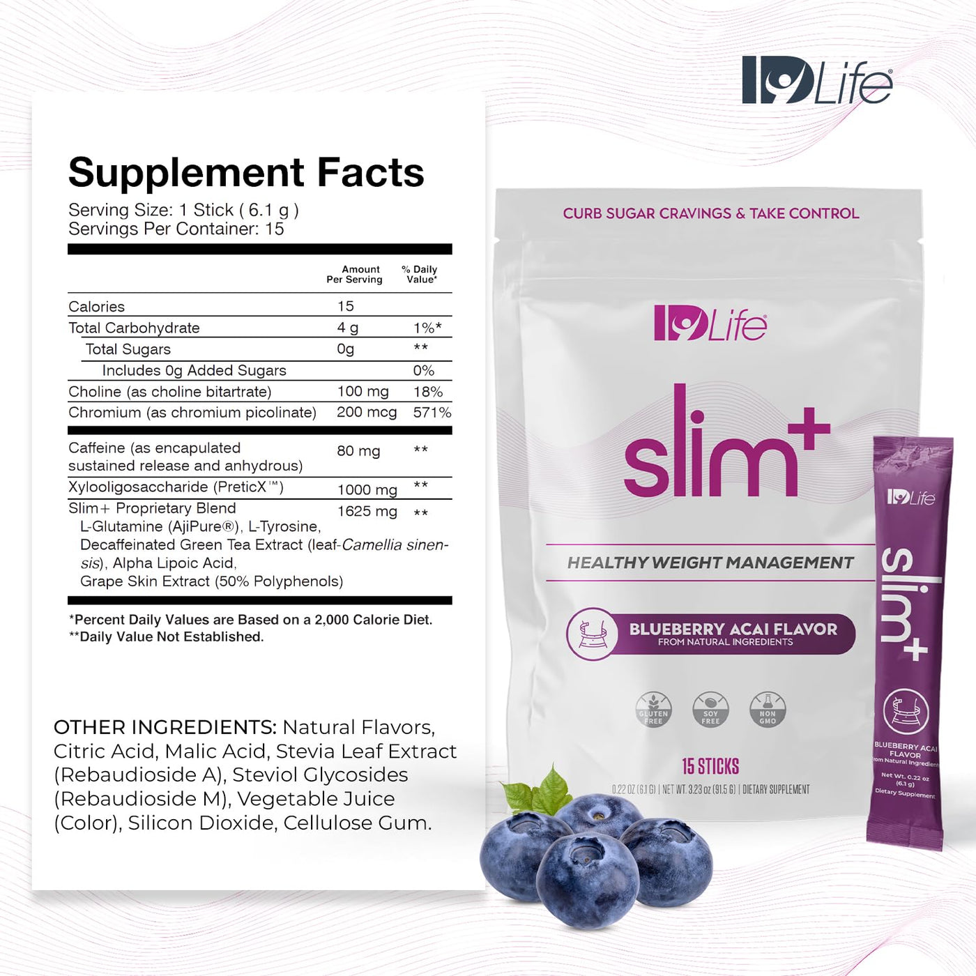 IDLife Slim+ - Weight Management Supplement - Easy to Prepare Delicious Blueberry Acai