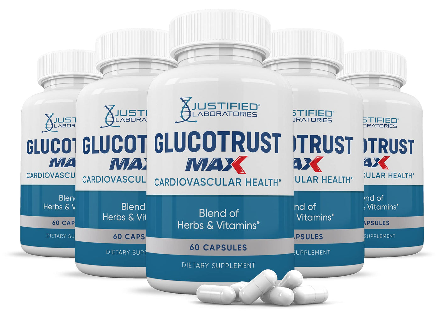 Justified Laboratories (5 Pack) Glucotrust Max 1295MG Formula Supplement Pills 300 cap