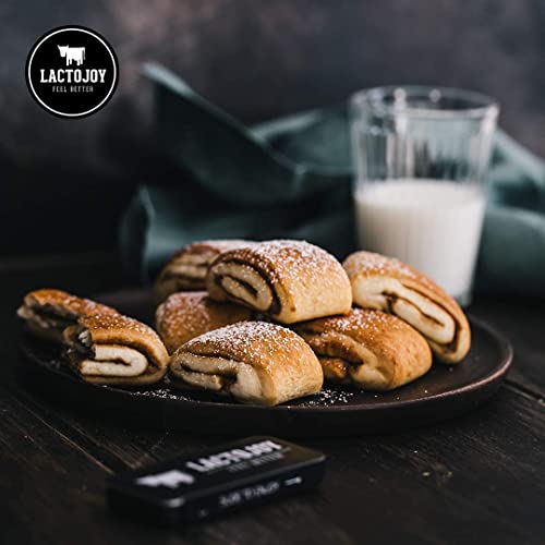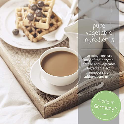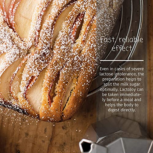 - ABDOMINAL DISCOMFORT: LactoJoy helps you to finally eat again without digestive difficulties. Say goodbye to problems with the digestion of dairy products thanks to our highly effective natural lactose enzyme tablet. Against bloating, cramping & diarrhea.