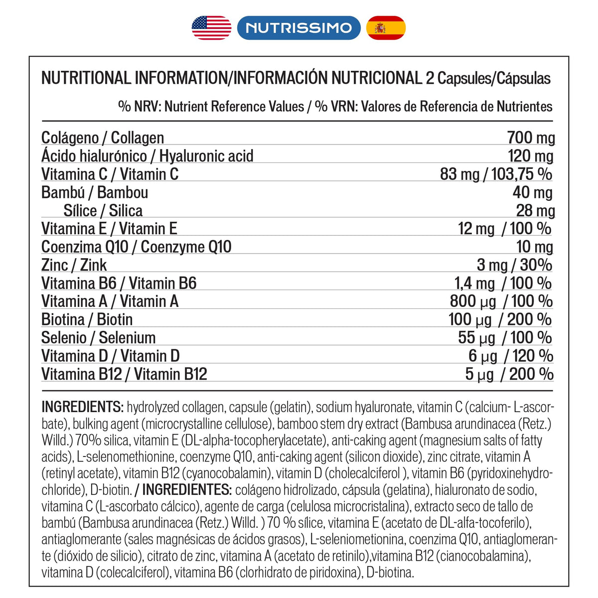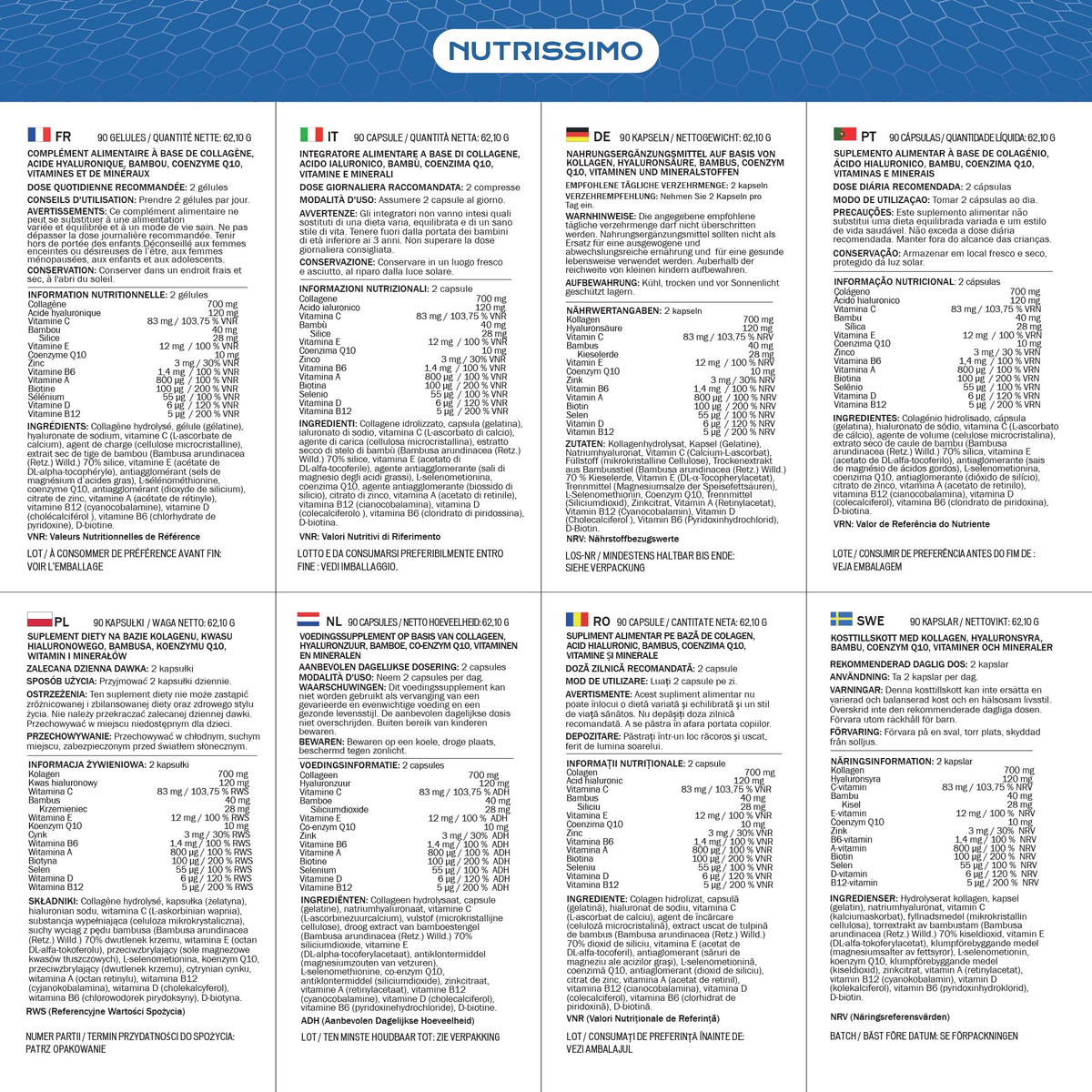 NUTRISSIMO Collagen + Hyaluronic Acid + Biotin + CoQ10 + Vitamins A, C (non-acidic), D and B12 + Zinc