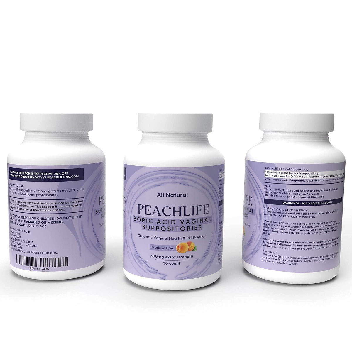 Peachlife Boric Acid Suppositories and Small Soft Menstrual Cup with Ring Pull