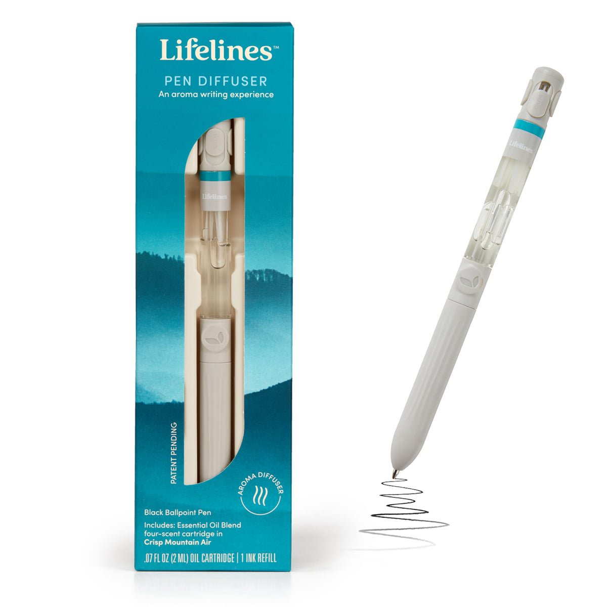 Pen Diffuser in Crisp Mountain Air Essential Oil Blends - Elegant 1.0mm Ballpoint Tip - Black Pen