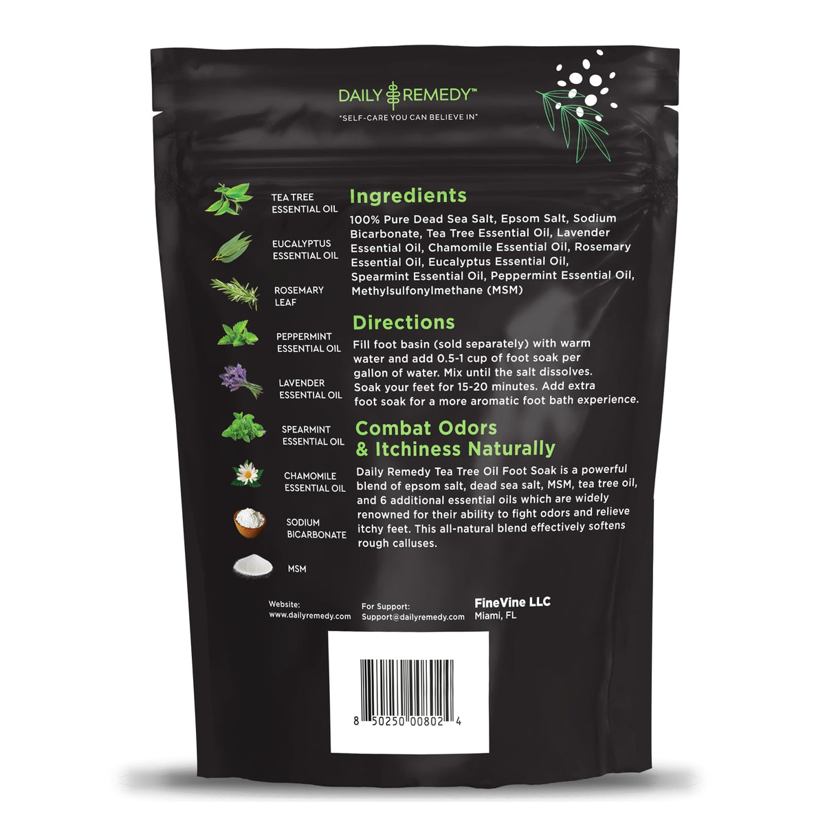 - 👣 SOAK, RELAX & SOOTHES TIRED FEET - Daily Remedy’s tea tree oil foot soak has been used by customers and athletes around the globe to help relax tired feet, softens foot calluses, soothes itchy feet and improves damaged toenails while keeping feet healthy.