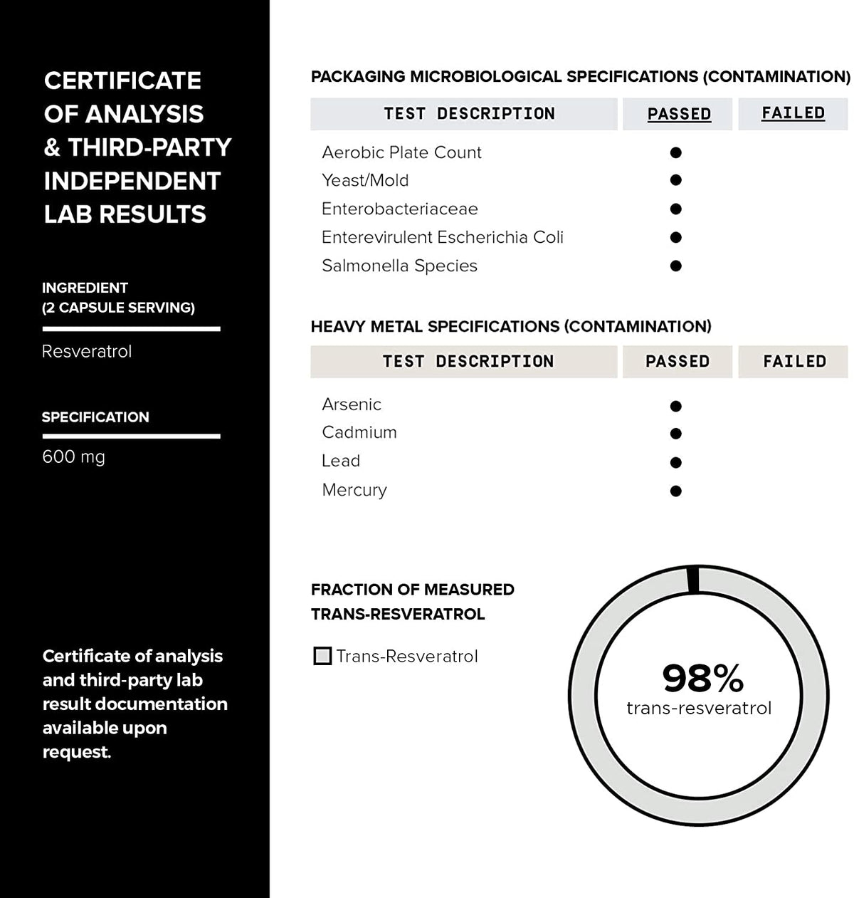 Toniiq Ultra High Purity Resveratrol Capsules - 98% Trans-Resveratrol - Highly Purified