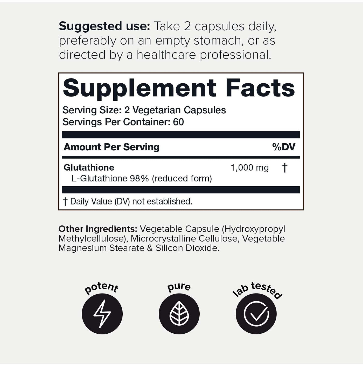 Toniiq Ultra High Strength Glutathione Capsules - 1000mg Concentrated Formula - 98%+