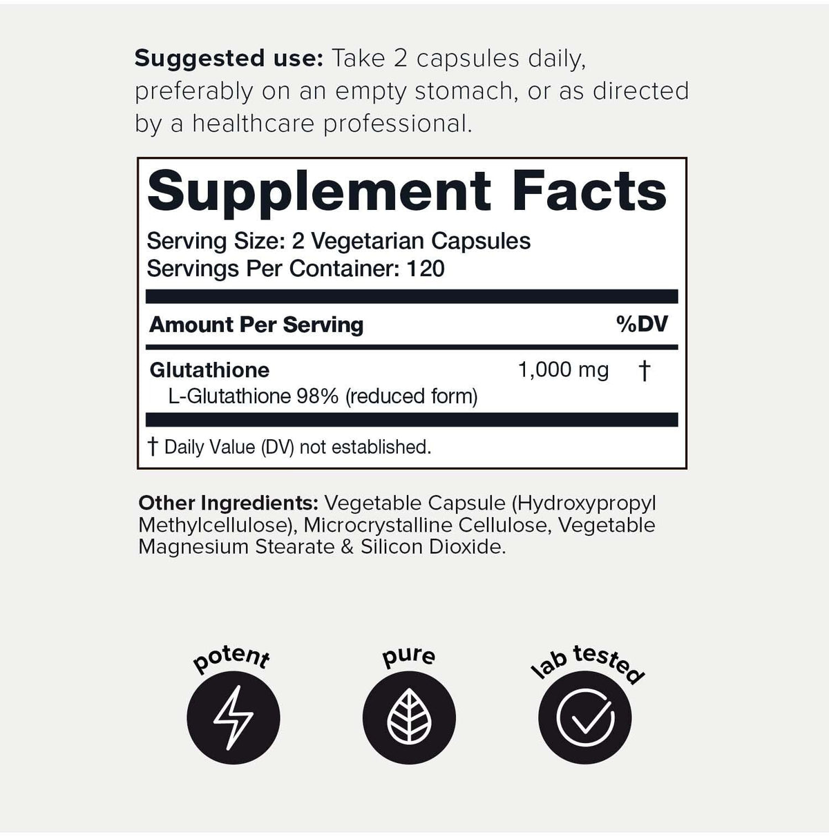 Toniiq Ultra High Strength Glutathione Capsules - 1000mg Concentrated Formula - 98%+