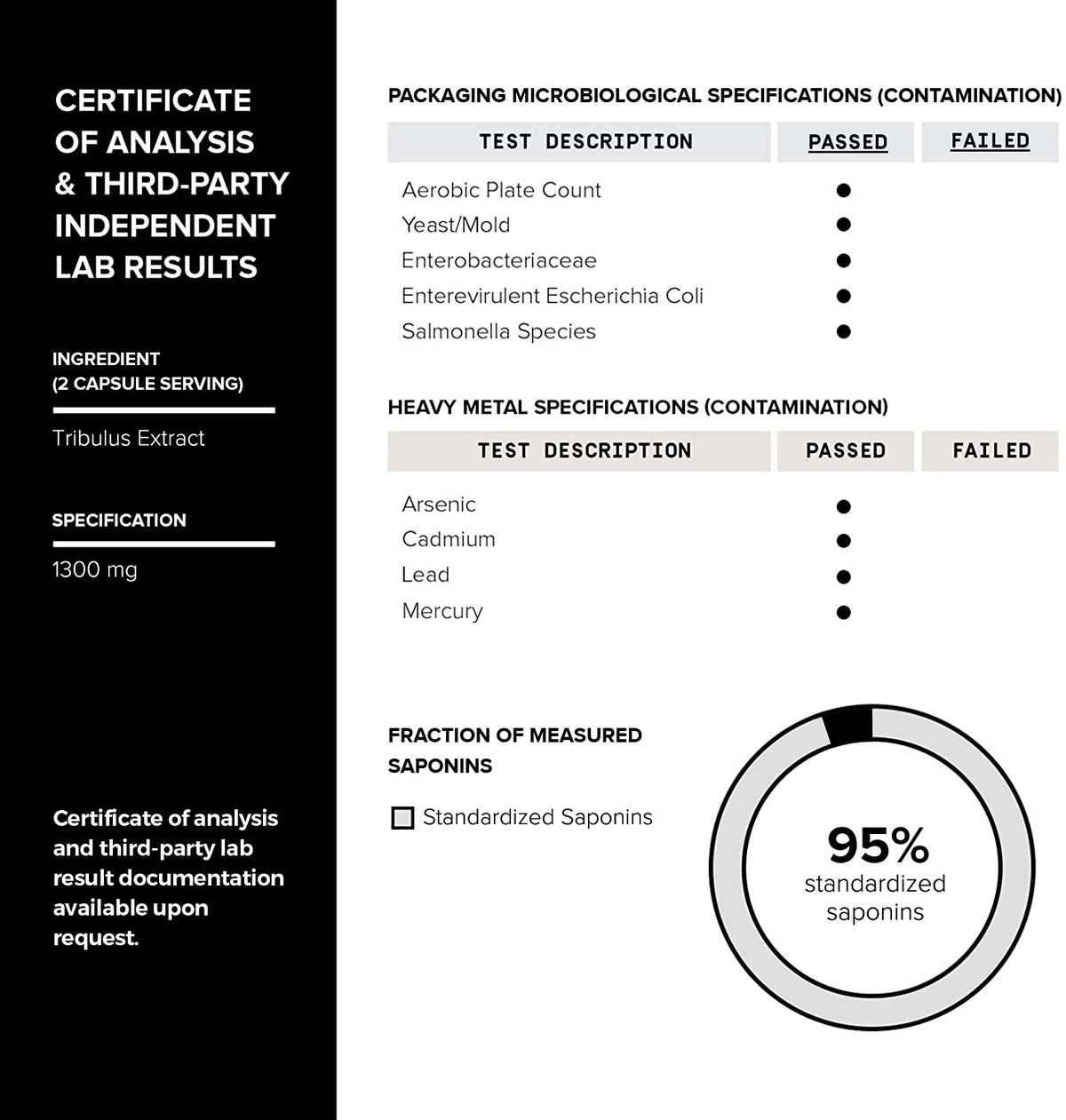 Toniiq Ultra High Strength Tribulus Capsules - 95% Steroidal Saponins - 1300mg Concentra