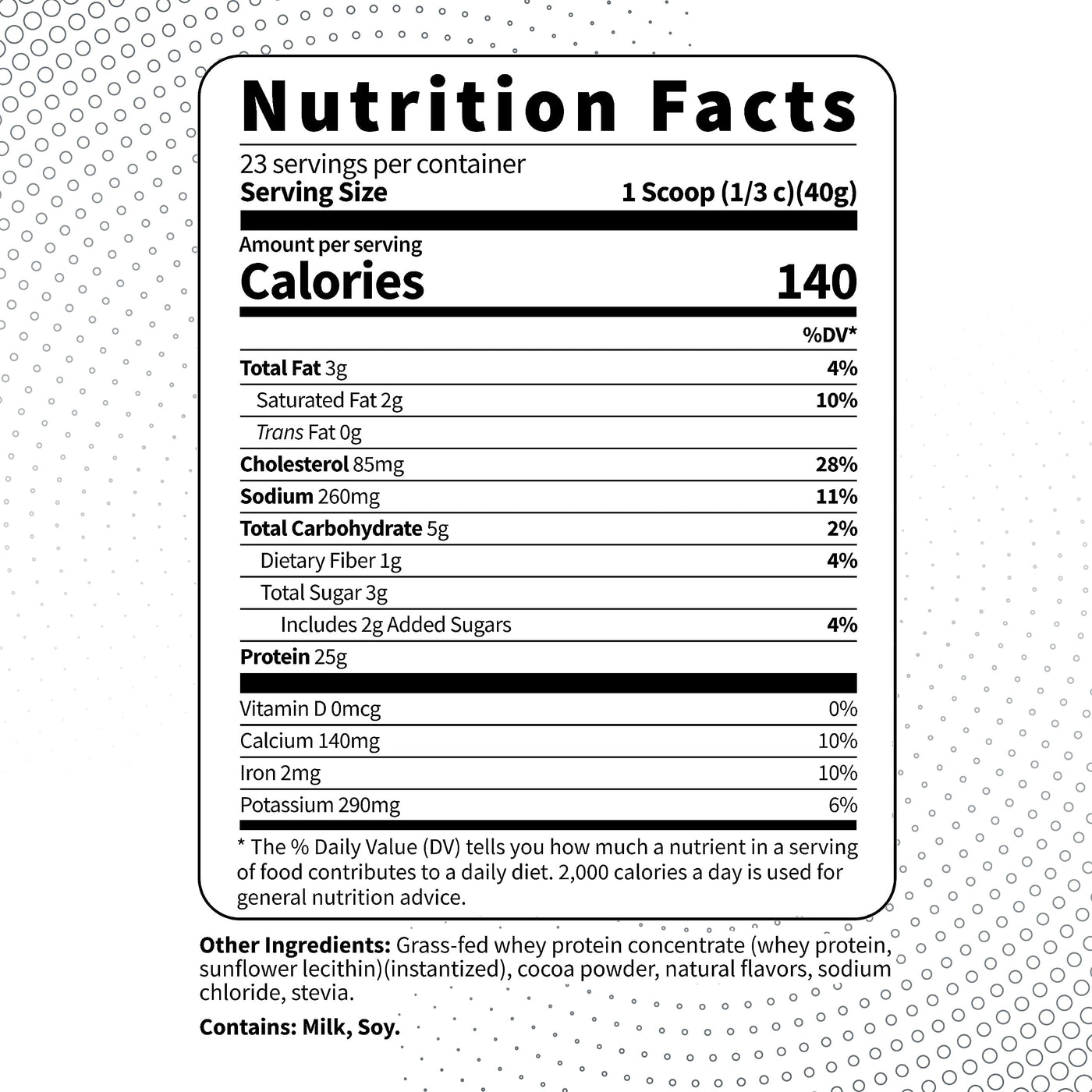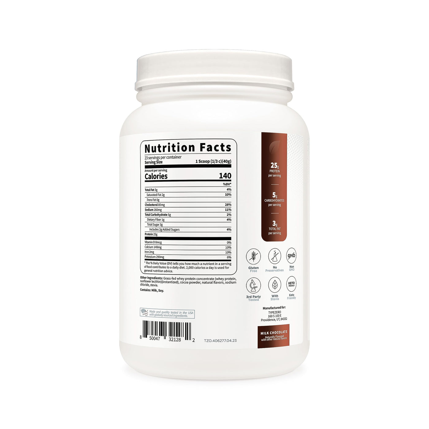 Type Zero Grass Fed Whey Protein Concentrate Powder (Chocolate, 2LBS) - Gluten Free
