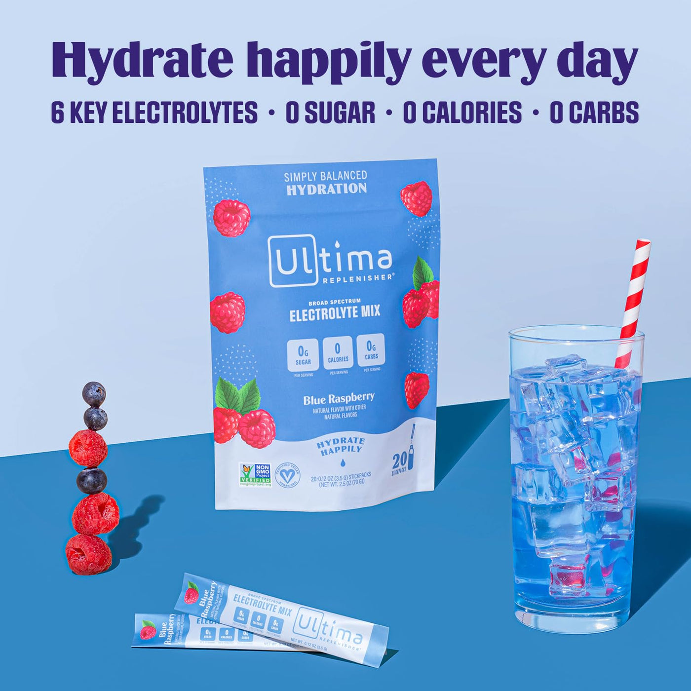 - Hydrate happily: Ultima electrolytes powder delivers everyday hydration packed with 6 key electrolytes, vitamin C, zinc and delicious plant-based flavors; Ultima electrolytes provide enhanced hydration with 0 sugar, calories or carbs