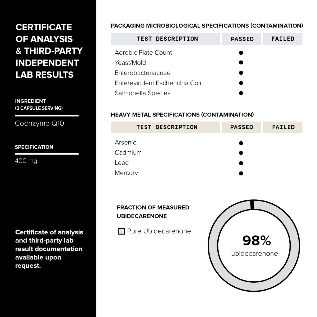 Ultra High Purity CoQ10 400mg - 98% Purified Third-Party Tested CoQ10 Supplement