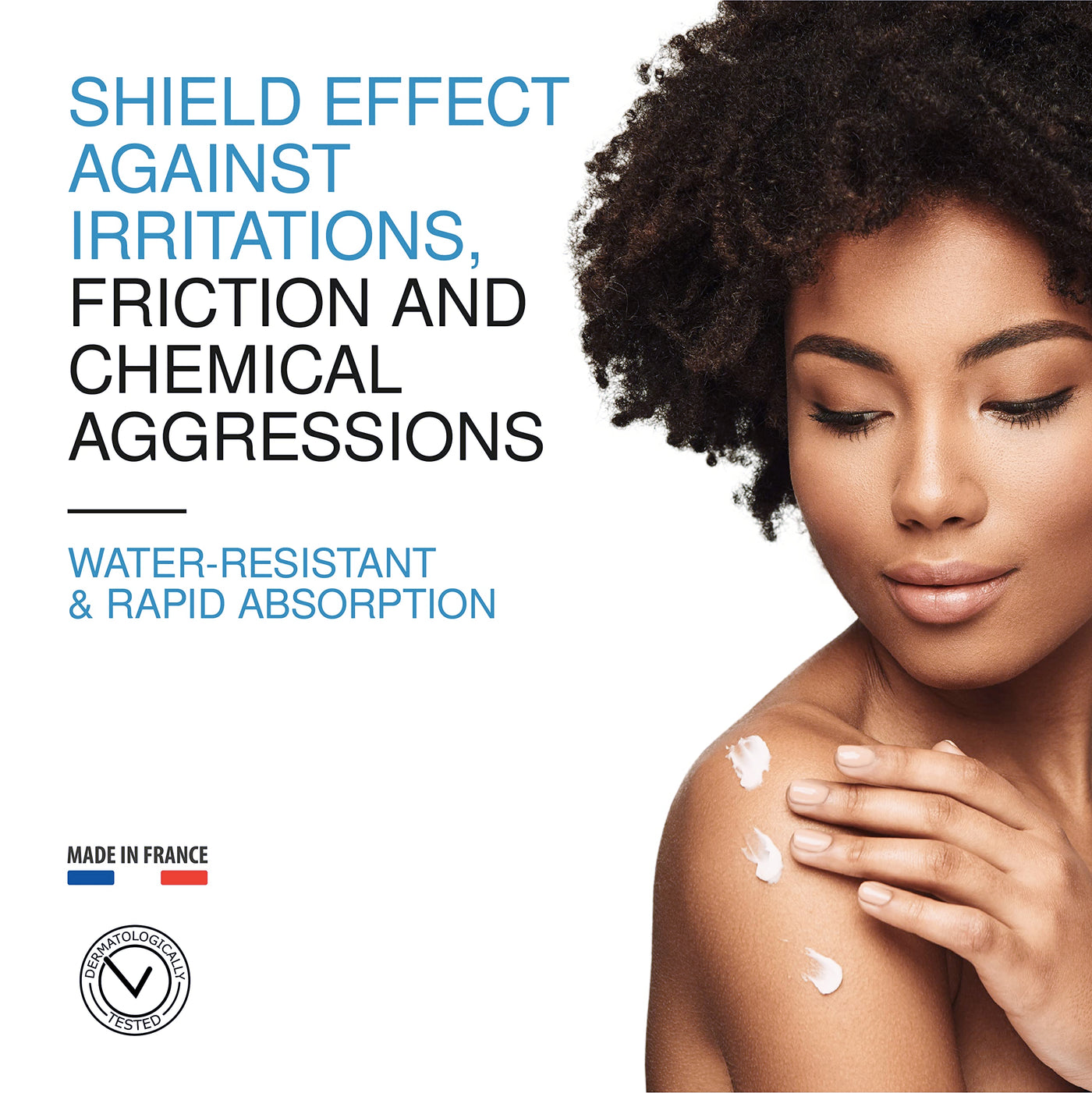 - The combination of two polymers provides an insulating action on the skin's surface to prevent future aggressions.