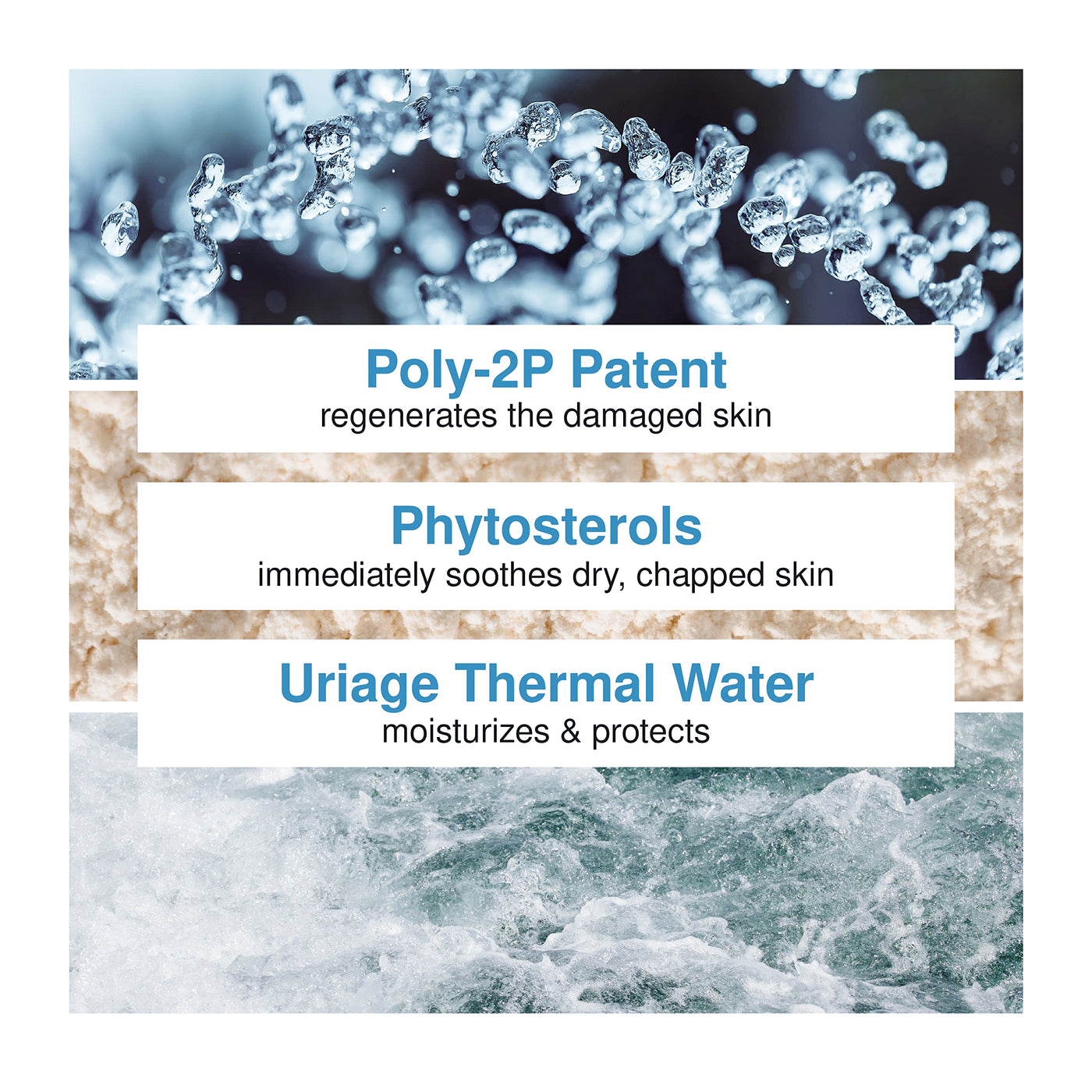 Details: The first repairing and insulating cream formulated with the patented Poly-2p complex. Its dual action provides an effective shield against irritation, friction and chemical aggressions on the skin. This treatment is suitable for both professional and personal use. cicapair calming treatment for face & body. 70% of individuals suffering from hand dermatitis who tested Bariederm Crème showed improvement in their skin condition Clinical study under dermatological control on 39 subjects. Twice daily application for 28 days. Self-evaluation questionnaire. With Uriage Thermal Water in the heart of all Uriage formulations, all our different products are isotonic, thanks to their high concentration of minerals and trace elements, as well as highly moisturizing, thanks to its composition close to NMF (Natural Moisturizing Factor). They all have a high amount of calcium, which provides a soothing effect to the skin, and a combination of Copper & Zinc, which favors the healing of the tissues. Their richness in manganese & magnesium guarantees antioxidant protection and the action of silicon softens and create a permeable film that retains water and maintains the correct hydration of the epidermis.