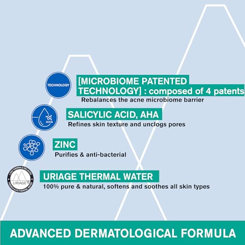 Details: Global skincare, both for the "treatment" of sebum, blackheads, and spots and as a "background regimen" against the main causes (triple regulation): -61% of spots after 2 months; Less sebum, blackheads and spots. Skin is refined and pores are tightened. Contains one of the highest concentrations of AHA yet with excellent tolerance Fewer scars, Fewer rebounds: contains high amount of calcium, which provides a soothing effect to the skin, and a combination of Copper & Zinc, which favors the healing of the tissues.Its richness in manganese & magnesium guarantees antioxidant protection and the action of silicon softens and create a permeable film that retains water and maintains the correct hydration of the epidermis. With Uriage Thermal Water in the heart of all Uriage formulations, our different products are isotonic, thanks to their high concentration of minerals and trace elements, as well as highly moisturizing, thanks to its composition close to NMF (Natural Moisturizing Factor).