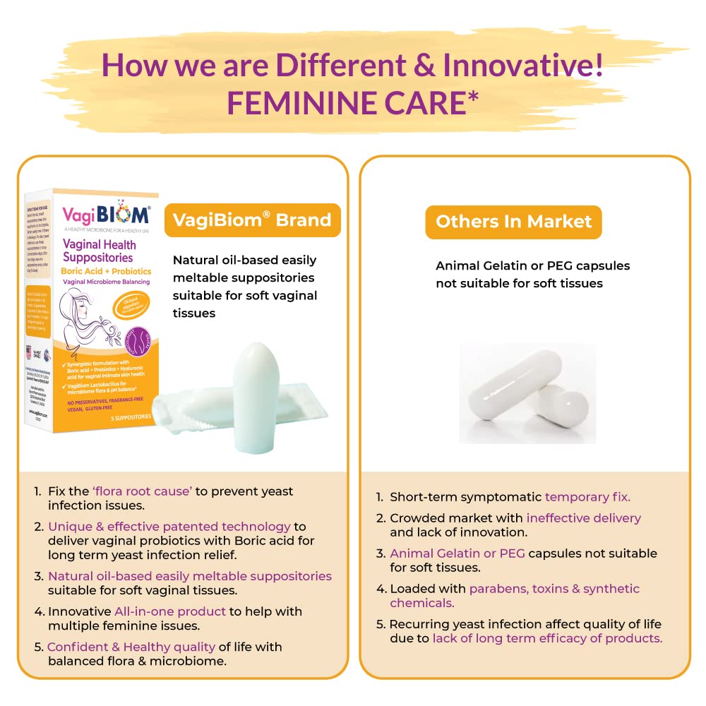 - PROBIOTIC WITH BORIC ACID SUPPOSITORY FOR WOMEN: Biom use patented microbiome formula to nourish healthy vaginal flora, balance pH, maintain vaginal odor, to help you feel clean, fresh and confident! This Lactobacillus suppositories seed and nourish beneficial lactobacillus flora