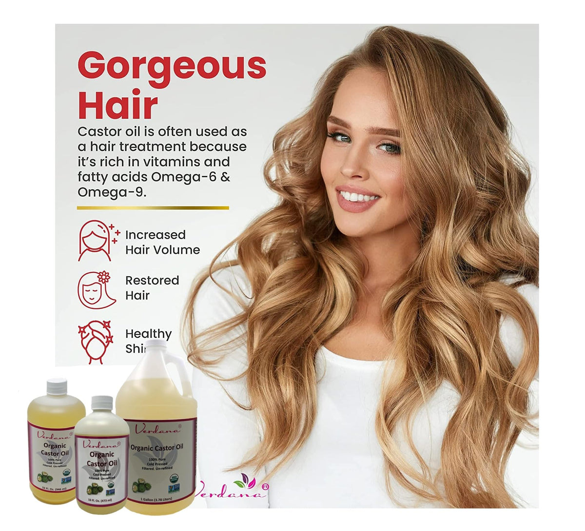 - PURE USDA ORGANIC: Like other Verdana products, this organic USDA castor oil contains nothing but the pure, essential, natural, organics you expect. Cold pressed to bring out its best properties. Our experts have left this castor oil in its natural state to give you the pristine look and feel you deserve.