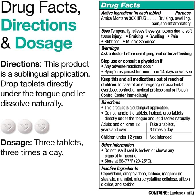 Details: Arnica Montana 30X: Get a supportive lift with our homeopathic arnica tablets. The best arnica tablets. Arnica tablets with natural arnica montana are ideal after surgery or injury. Arnica Montana Tablets: Easy to take. Bottle contains 150 arnica tablets. Arnica For Bruising: Top doctors favor our arnica tablets for bruising and swelling after surgery. Arnica 30X homeopathic potency is ideal. Arnica 30X Bruise Pills: Our arnica montana tablets are sourced from real arnica montana flowers. The best arnica pills for bruising and swelling and arnica pills for bruising and swelling after surgery. Thousands of doctors love VitaMedica’s arnica products including arnica and bromelain, arnica cream, arnica montana gel, arnica recovery complex and arnica pills. Our arnica oral anica tablets made from arnica montana herb work great with arnica gel montana, arnica gel 2%, arnica bromelain, arnica patches, arnica cream for bruising and swelling after surgery, arnica montana topical, arnica oil for bruising and swelling, arnica montana gel for bruising, arnica montana liquid, and other arnica montana supplements or arnica supplements such as arnica montana tablets for bruising.