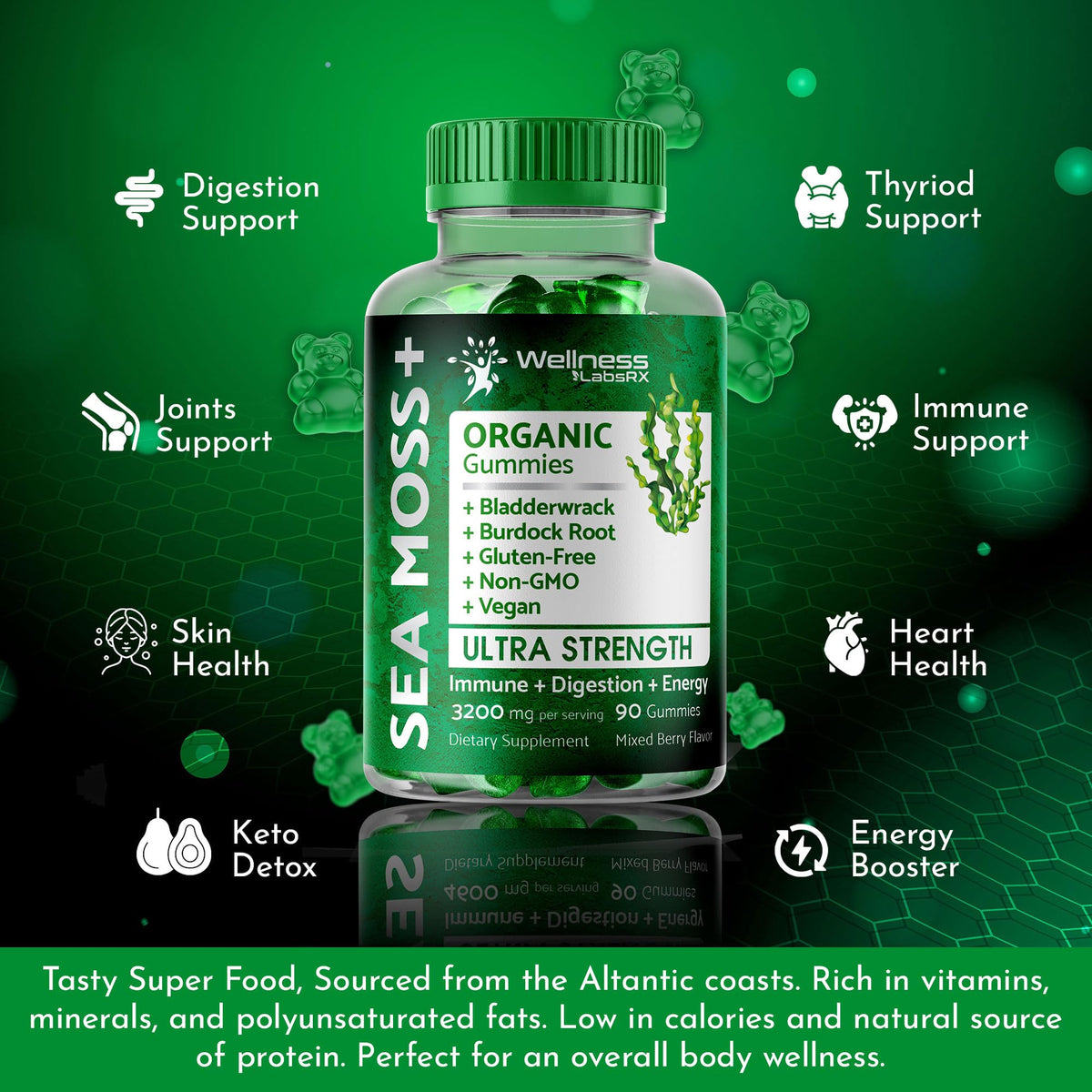 WELLNESS LABSRX Sea Moss Gummies, 3200mg Organic Seamoss, Irish Sea Moss