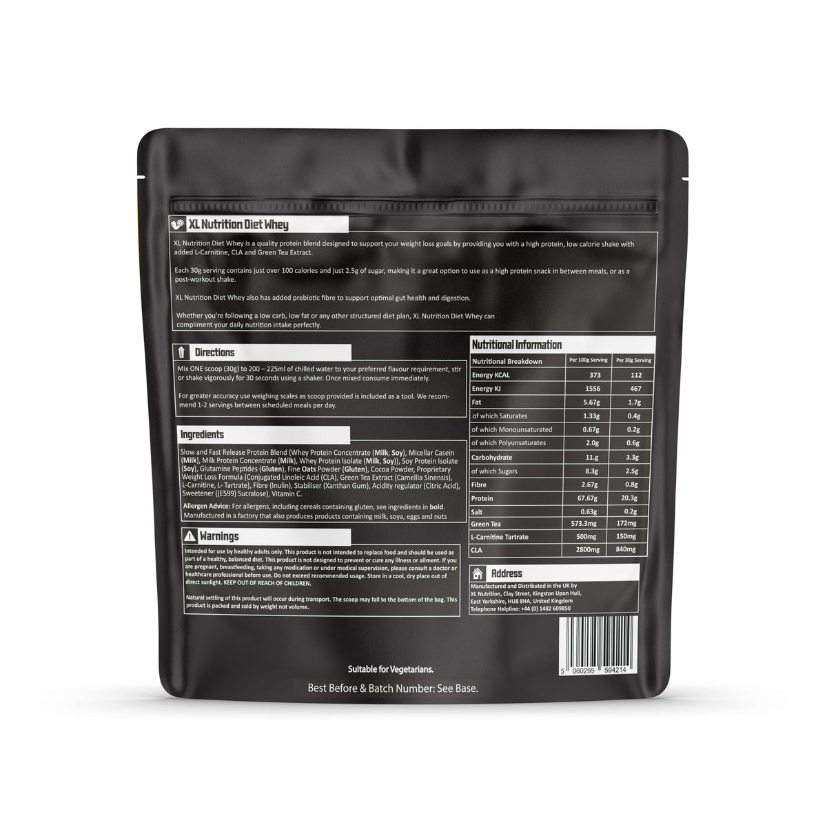 XL Nutrition Diet Whey is a quality protein blend designed to support your weight loss goals by providing you with a high protein, low calorie shake with added L-Carnitine, CLA and Green Tea Extract. Each 30g serving contains only 112 calories and just 2.5g of sugar, making it a great option to use as a high protein snack in between meals, or as a post-workout shake. XL Nutrition Diet Whey also has added probiotics to support optimal gut health and digestion, as well as 100% of your daily Vitamin C intake per 30g serving.