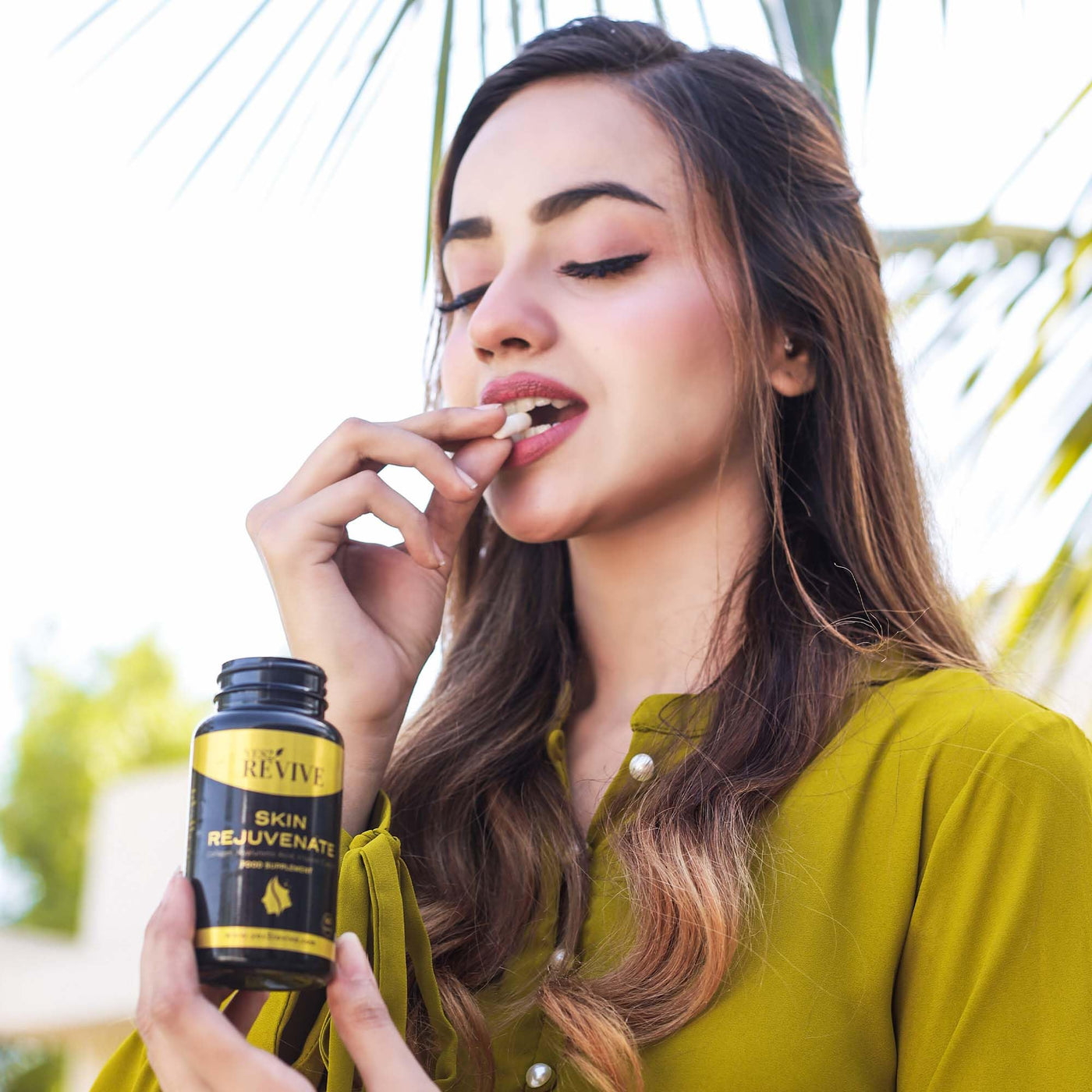 Details: Product description Skin Care Collagen Capsules SupplementsSkin Rejuvenate collagen peptide powder supplement uniquely formulated capsules contains the finest quality plant based ingredients to perfect your skin, hair and nails. Skin Rejuvenate by Yes 2 Revive is the best skin collagen liquid infused capsule supplements for women and men on the market. Our collagen powder capsules are designed to improve your physical appearance while also giving your metabolism a boost. Get rid of dark circles and skin pigmentation with our skin rejuvenate wonder formula of collagen peptides. Designed to get rid of your skin imperfections and leave you with brighter and damage-free skin.Collagen with Vitamin C, E Protein Capsules Key Benefits:Boost skin glowReduce wrinkles and fine linesReduce dark spots - Anti AgeingEnhance complexionReduce pigmentationHydrate the skinRepair damaged skin cellsYounger looking skinFormulated for the full bodyFast workingEncourage Hair and Nails growthStrengthens Hair and NailsSatisfactions:The Ultimate Formula. UK made and GMP Certified.Safety Information:Do not exceed the stated dose.If you are pregnant, breastfeeding, taking prescription medication, or under medical supervision, it is advisable to consult a GP prior to taking any supplements.Discontinue use and consult a GP if an adverse reaction occurs.Not suitable for persons under the age of 18.Do not use of if seal is broken or missing.IngredientsMarine Collagen, Hyaluronic Acid, Vitamin C, Vitamin E Ingredients Collagen, Ascorbic Acid, Hyaluronic Acid and Vitamin E. Collagen
