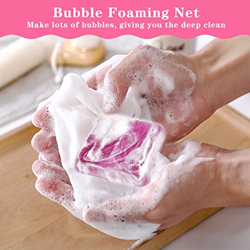 - ✿【Perfect Set With Foaming Net】The foaming net are made of polyethylene, soft and durable, good for producing bubbles. And you can just place organic feminine wash bar soap inside the bag and pull the drawstring to tight it; The foam net can be hung against the wall with its drawstring and can dry quickly, the mesh bag for soap pouch can keep the feminine wash bar clean.