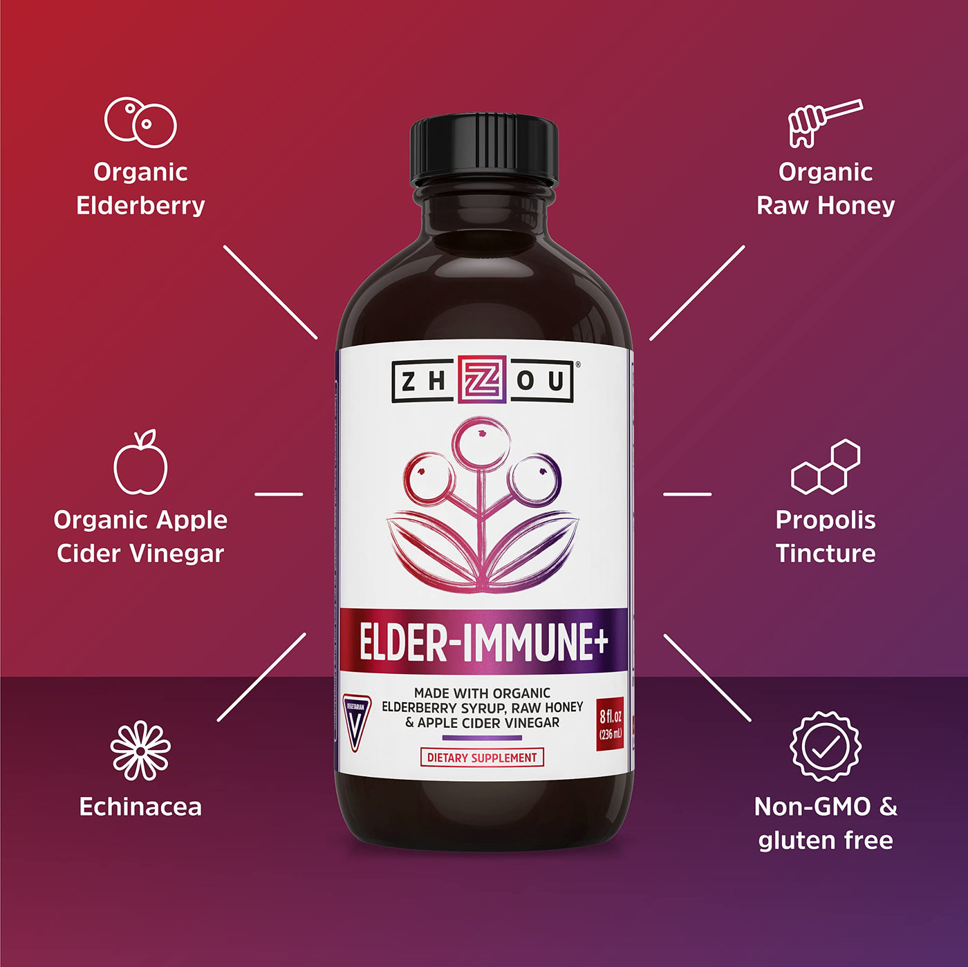 Zhou Nutrition Elderberry Syrup, Immune System Booster with Organic Elderberry Syrup
